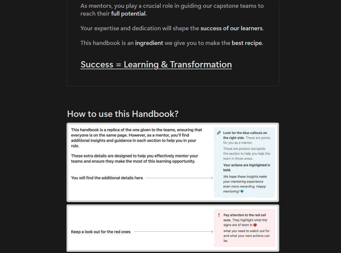 “That handbook is so good and I told my team leads that I’ll spend some time reading it before starting to interact with the team.” - Aravindh (mentor)
